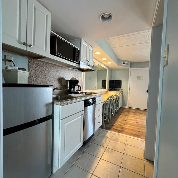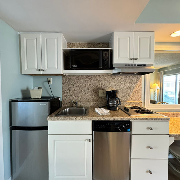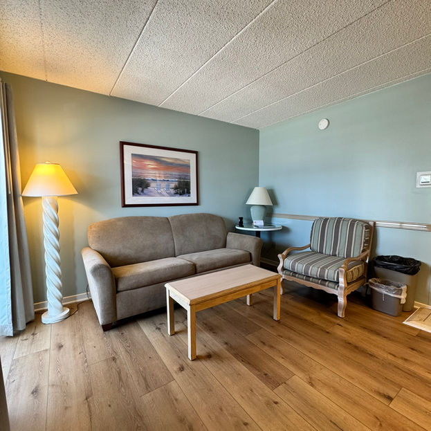The 28 inviting rooms at The Wild Dunes Inn each have a king-size bed, a living area with a pull out sofa, full bathroom, and fully equipped kitchenette.